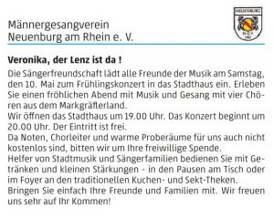 Männergesangverein "Sängerfreundschaft" Neuenburg am RheinPresseMitteilungsblatt „Hallo Neuenburg am Rhein“ vom 24. April 2025