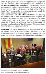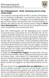 Badische Zeitung „Frühlingskonzert“ vom 14.05.2025 Männergesangverein "Sängerfreundschaft" Neuenburg am Rhein